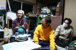 理事長の山本さん、鈴木さん、ヘルプの佐藤さんとともに母屋を改装している真っ最中。