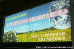 しかしBDF精製自体はできても、BDFの大量生産と副産物であるグリセリンをどうするかなど、現在は実用化や商品化への部分で、今後の課題としていくそうだ。