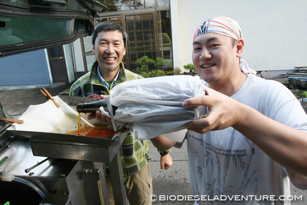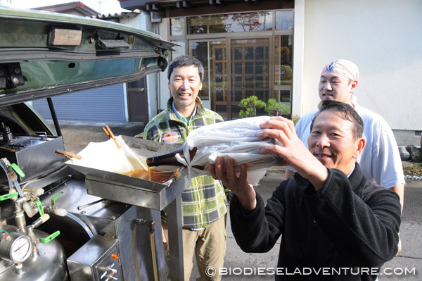 一升瓶で注入して頂きました。もちろん中身は廃油です。