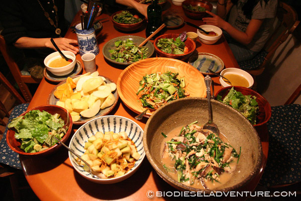 山奥の古民家を改装し、自給的暮らしをされています。目の前の畑では、たくさんの野菜が実っていました。それらを使った最新のローフードメニューをご馳走して頂いたのですが、これがめちゃくちゃ美味しくて、身体がすっきり!