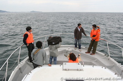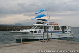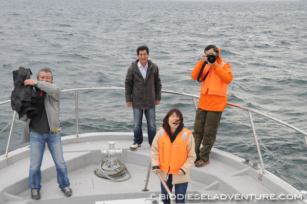 天草のイルカウォッチングを体験するために、船に乗りました。