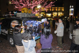 イルミネーションツリーをバックにパシャリ!クリスマスらしいですね〜。