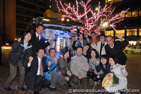 食後にバスコファイブも見て頂いて、みんなで記念写真。みなさん、ほんとうに明るく、のりがいい〜方ばかりだった!