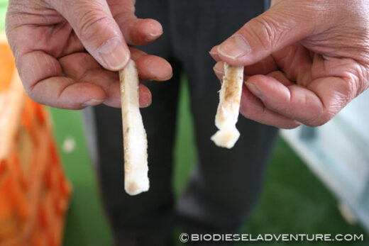 左のゴボウは、真っ直ぐできれいに切れているから使えるけれど、