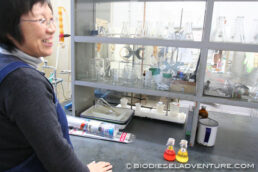 “実験室”の名前の通り、普段は地産の揚げかまぼこの栄養成分などの成分分析や化学実験を行っている。そして、地元「塩釜の揚げかまぼこの廃油で作られたBDF(シオガマとサカナの頭文字 “S” を付けて、”SBDF”と言うそうだ)」の自主分析や検査を行っているのだそう。