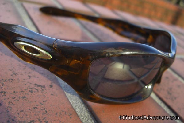 特に僕のお気に入りはオークリーの「モンスタードッグ」だ。視界が広い上、上部からの光の差し込みも少なく、サングラスの柄の部分が短めなのでヘルメットをしながら使う事ができるからだ。(※ラリー用はさらにヘルメットをしても邪魔にならない様に各部を削ったりして調整してもらっている)