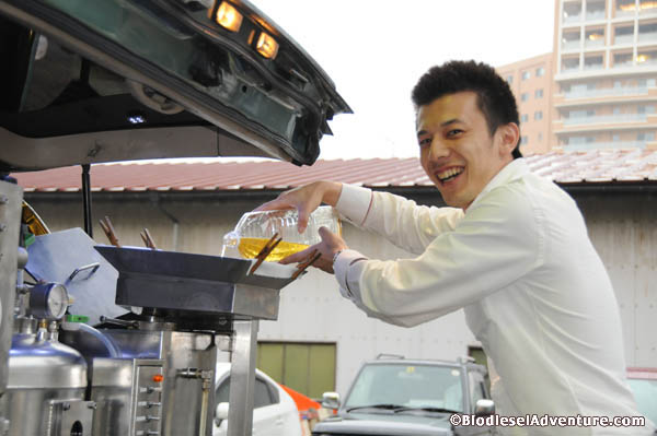 石黒さん、山下さん、突然の訪問にも関わらず、丁寧にお迎え頂きましてありがとうございました。すばらしい燃料を頂き、味わって走っています。バイオディーゼルカーも喜んでいるようです。