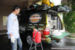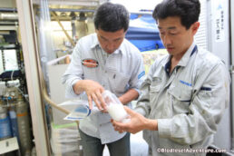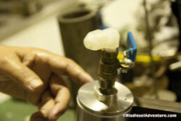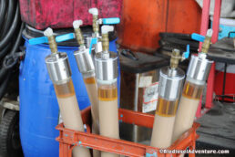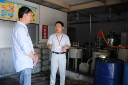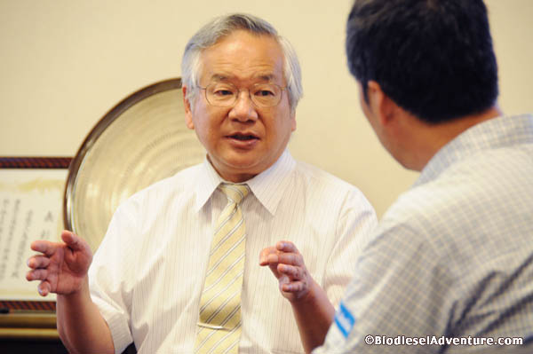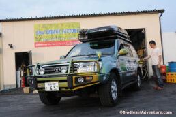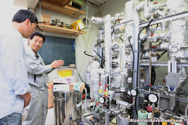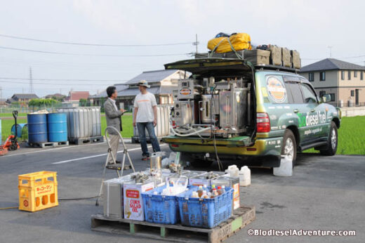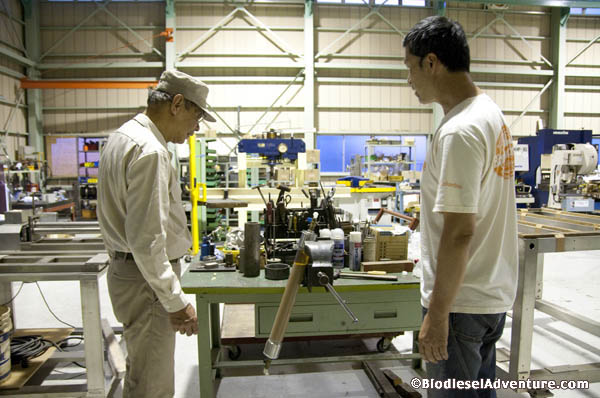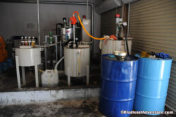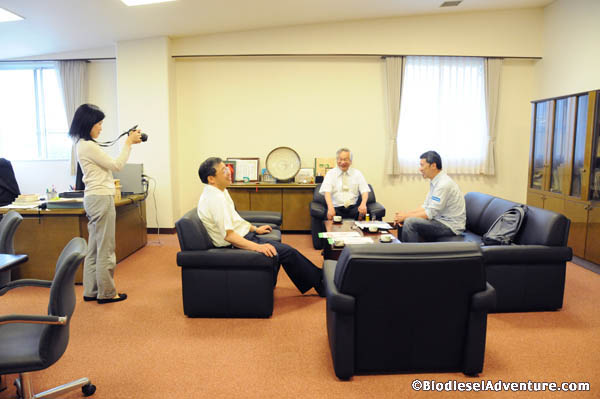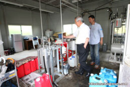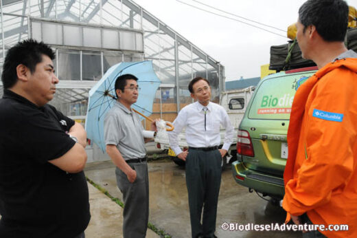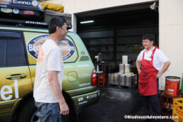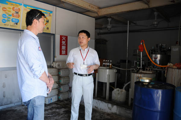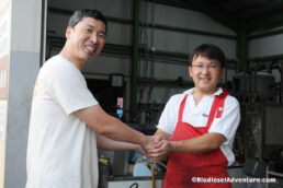 「グリセリンの処理に困っているんですよ」とグリセリンがたっぷり入ったいくつもの一斗缶を前に、副所長の明城さんがつぶやいた。そこで旅をする中で僕が見て学んだグリセリンを産業廃棄物として処理するのではなく、堆肥や助燃剤などさまざまな形で有効利用されていることをお伝えさせていただいた。この施設でも、グリセリンを有効活用をして、ますます事業に役立ててほしい。
