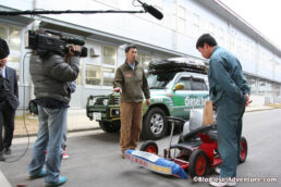 2007年のダカールラリー出場のときは、フランス人のメカニックと日本からトヨタ系列のベテランメカニック達が駆けつけてくれていた。その中で僕の車を担当してくれていたのが東京トヨペットの岡見メカニック(写真上)。バイオディーゼルカーで地球一周や日本一周でもテクニカルアドバイスや整備などもやってくれている縁の下の力持ち。