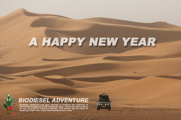 上の写真はバイオディーゼル燃料を使って僕がラリーを走っている写真。右上はバイオディーゼル燃料をルーフの給油口から岡見メカニックが入れている所だ。(ラリー車の燃料タンクは約400リットル入るので屋根から給油する)その日のステージを終えてビバーク(キャンプ)に戻ってくると、すぐにメカニックが車両を点検し、悪い所があれば修理してくれる。アフリカの砂漠での修理は埃と砂、暑さなど、日本の環境の整ったガレージで整備するのではないので、確実のテクニック、知識、体力、精神力がないと勤まらない。岡見メカニックは最後までマシンを完璧に仕上げてくれ、おかげでダカールにゴールできたのだ。