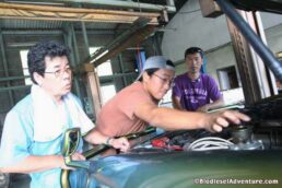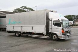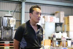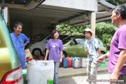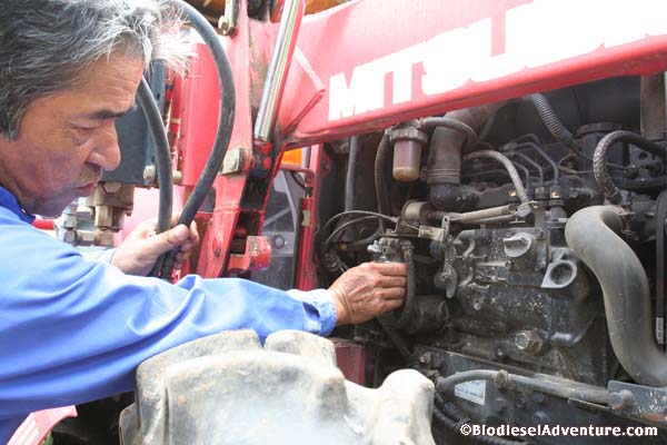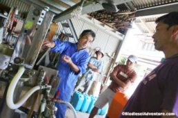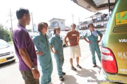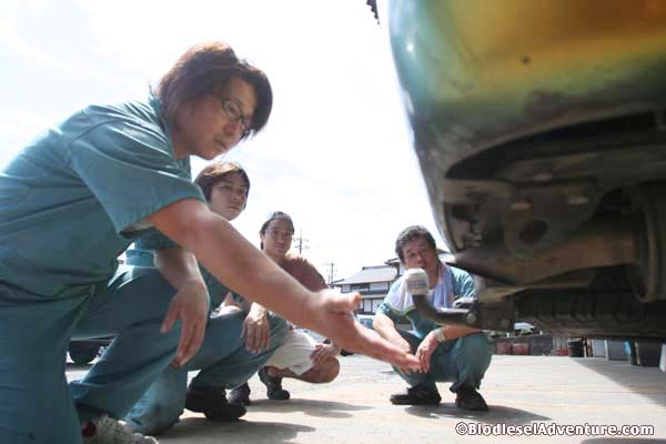 写真に写っている方がランドクルーザーに乗る岩下さん。このランクルももちろんバイオディーゼルカーだ。廃棄物処理について、プラントについてなど、快くいろいろとお話を聞かせて頂いた。