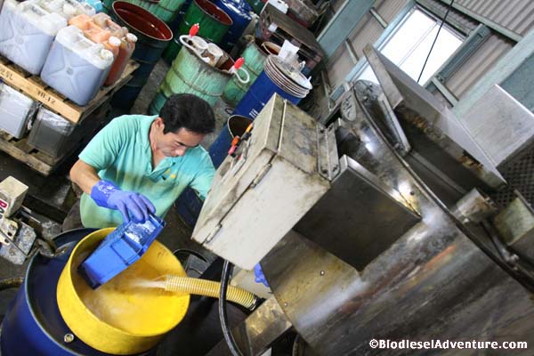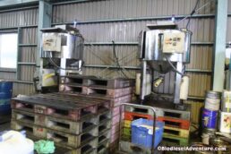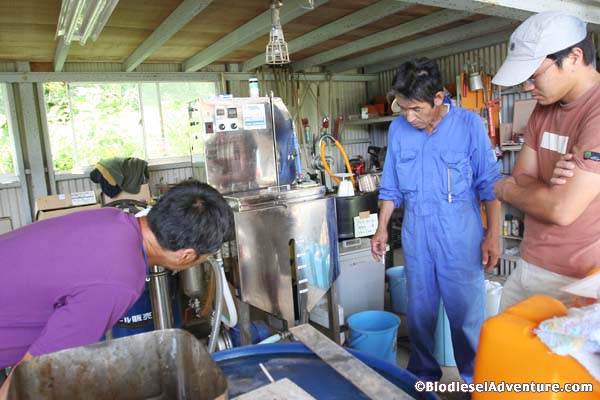 ここのバイオディーゼル燃料を精製するプラントは、岩下さん達が改良を重ねて作った200リットルを処理できる能力を持つ環境スペシャルだ。この形は初めて見るものでとてもシンプルで美しい。
