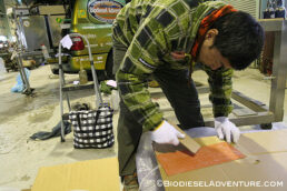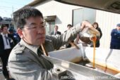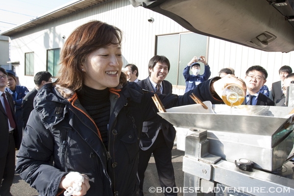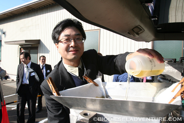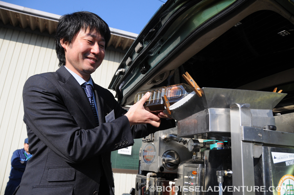 晃栄産業の皆さんからご用意頂いた廃油5リッターを部会の皆さんで注入して頂きました、ありがとうございました!
