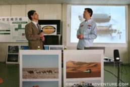 大学の教授、フィルター会社や水処理機器メーカーなど、約20名の会員の方に、旅の模様や世界のエネルギー事情のことなどをトーク。実際に僕のフィルター開発をして頂いた、富士フィルターの八雲井さんからもお話を聞くことができた。