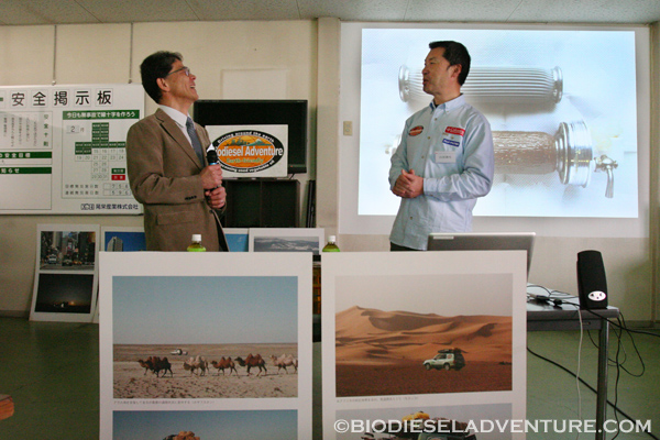 今部会の企画者が、会員である「富士フィルター工業(株)」。じつは僕のプラントに使用しているフィルターのひとつが「富士フィルター工業(株)」で作ってもらったものなのだ。このフィルターは汚れても清掃するだけで何度でも使用可能なもので、ゴミがでない、フィルターを交換しないですむ、そして、洗浄もほとんど1年に一度するかしないかでよいもの。これはわがままを聞いてもらい無償で協力開発して頂いたものだ。とても重要なパーツで、いい燃料作りになくてはならない要の役割を果たしてくれている。こんなご縁で、今回講演のお声がけを頂いたのだった。