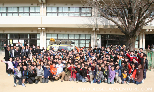 5年生を代表して10名の生徒さんと先生1名に廃油を注いでもらった。