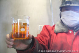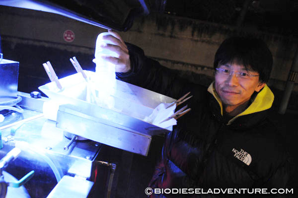 さらには寒さに対応できるBDFを精製するために、蔵王まで行って実験したり。廃油も冬季用と夏季用で分けている。
