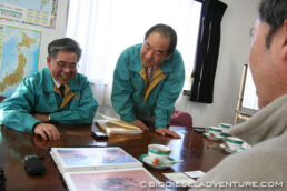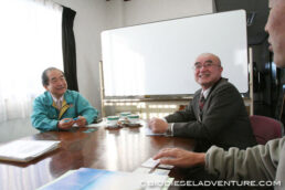 この日、工場の隣にある福祉施設「みのり会」施設長の笠井さんも来ていた。じつは市内の廃油の回収は、この施設に委託しているそうなのだ。