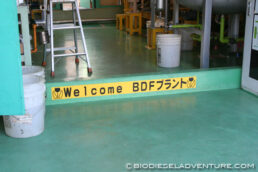 ここでは環境への取り組みとして廃油からBDFを精製、販売もしている。県内外をはじめ中国など海外からの見学者も訪れるということで、僕も見学を楽しみにしていた。