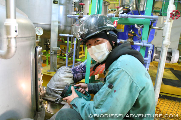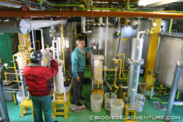 このプラントが稼働を始めたのは、平成18年10月。それまで何年も実験を繰り返し、それが今では1日7500リッターも精製できるこのような施設を作りだしたのだ。