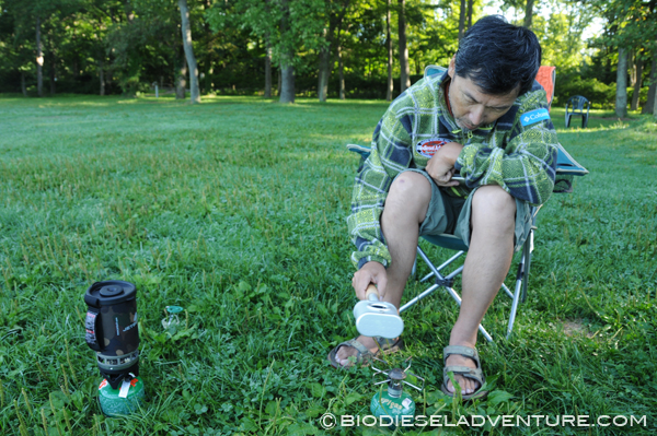 「廃食油95%から燃料ができるとすれば何リッター?」「燃料系統のデリバリー段階での問題は?」「バイオディーゼル燃料は、雑草でも作れるのか?」「油の収集はどうやって?」……などなど、ご質問頂いた内容はクルマやプラントの細部から、旅の模様まで多岐に及んだ。
